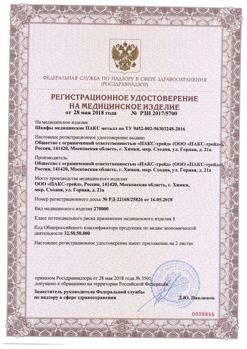 Регистрационное удостоверение на медицинское изделие ПАКС