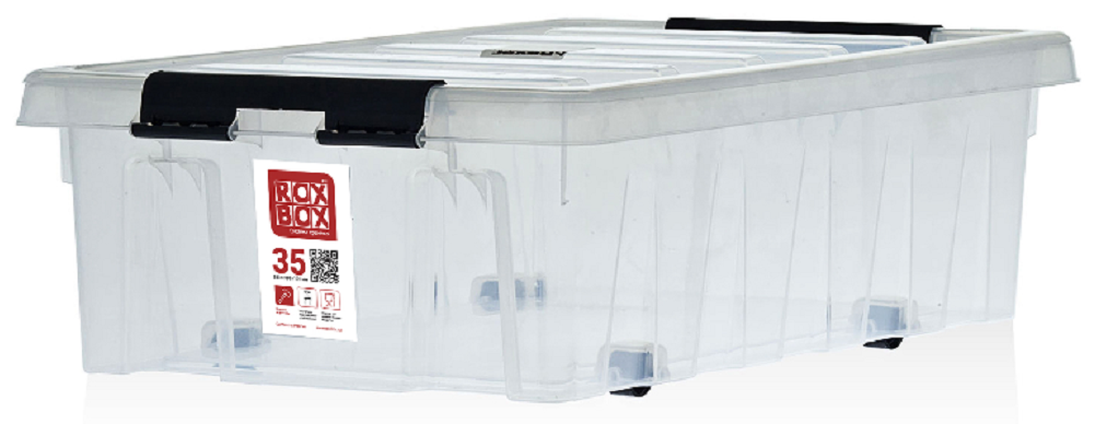 Контейнер подкроватный на роликах с крышкой Rox Box, 35 л, прозрачный
