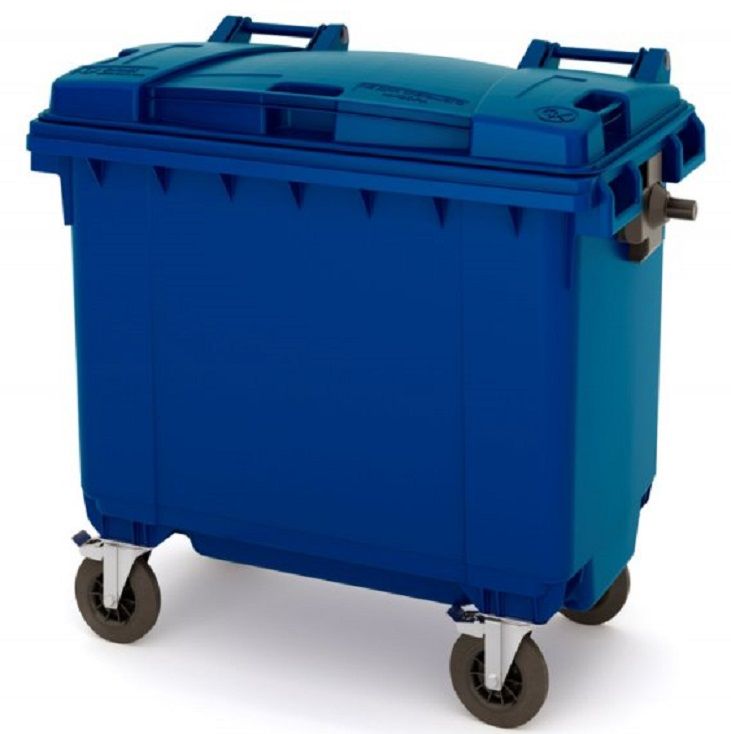 - Пластиковый мусорный контейнер 770 л. с крышкой, на 4-х колесах.