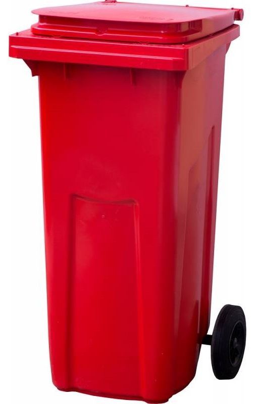Пластиковый мусорный контейнер с педалью 120 л, красный