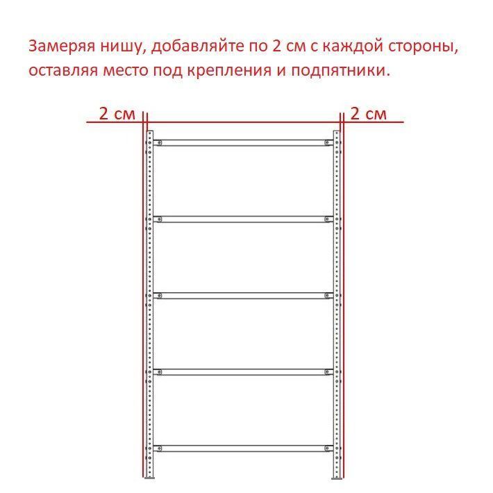 - Шаг перфорации стойки 25 мм, что позволяет легко регулировать высоту полок, адаптируя стеллаж под предметы любых размеров. Каждая полка способна выдержать нагрузку до 125 кг.